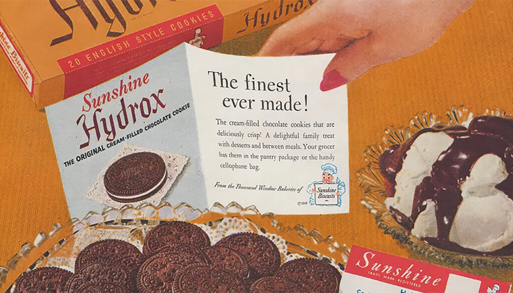Sadly, the Hydrox name, a mashup of “hydrogen” and “oxygen” that was intended to sound natural, shared its trademark with the Hydrox Chemical Company. Even without that confusion, the name never sounded remotely appetizing, let alone playful or smart.